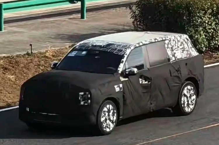 新车会是一款三排大型SUV,车顶线条比较平直,轮毂样式没有曝光。尾部采用上窄下宽的设计,车顶配备了扰流板,有望采用贯穿式尾灯设计。