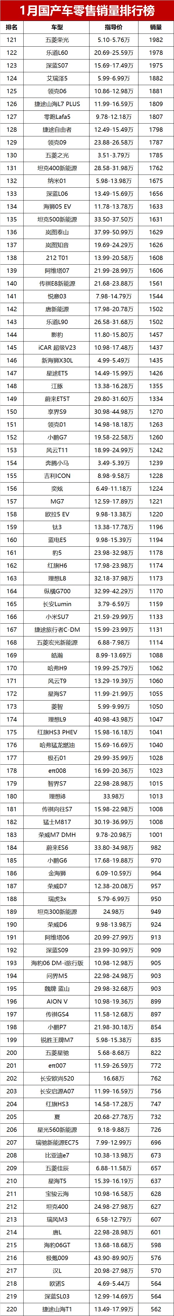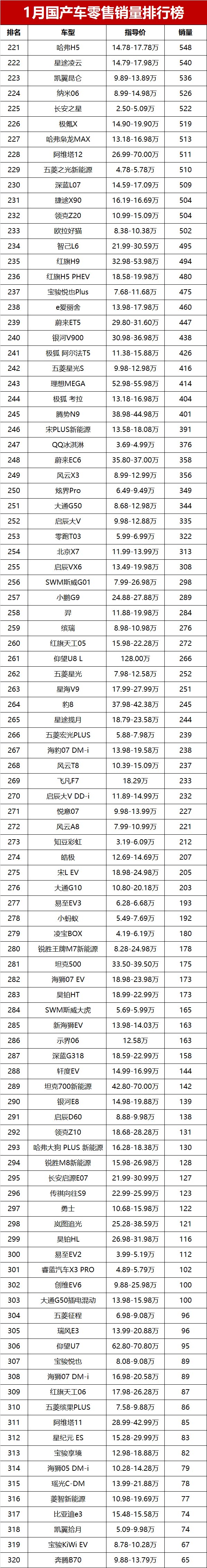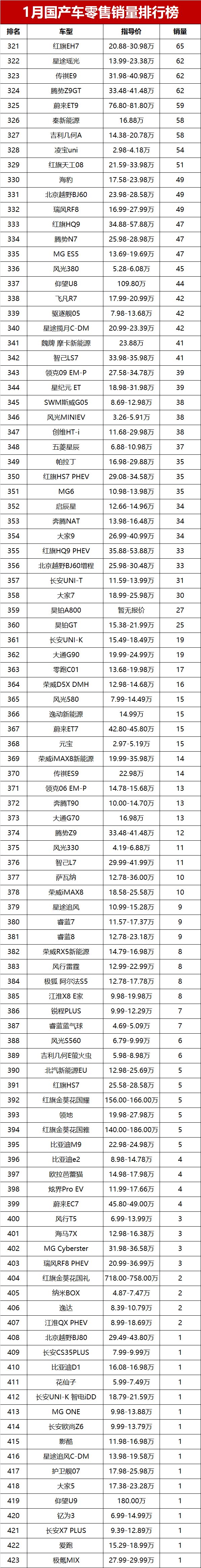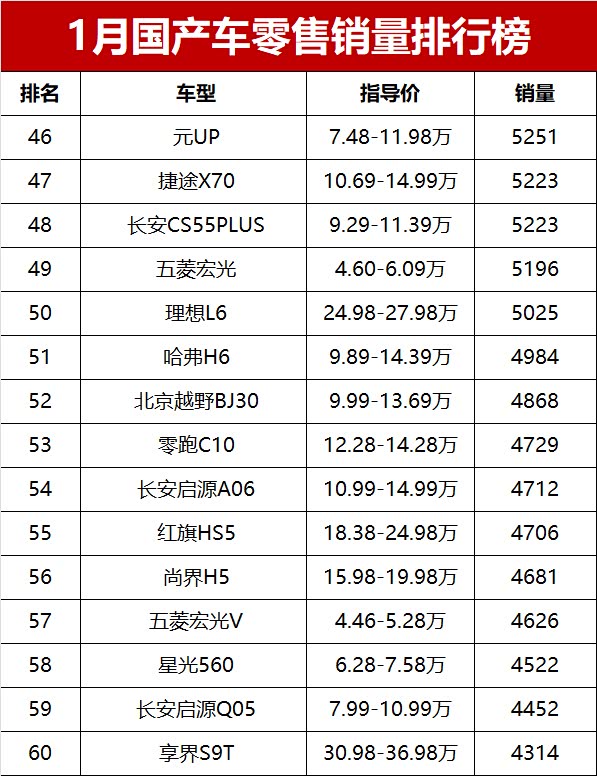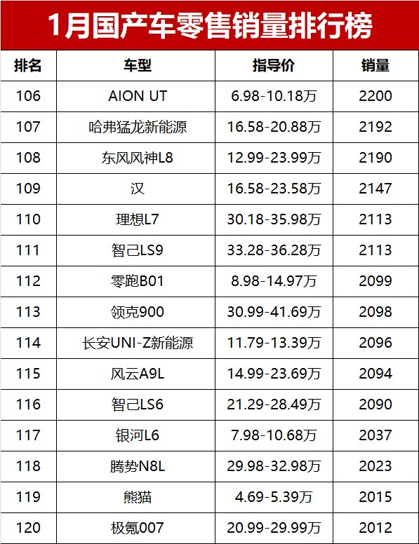 虽然1月行情偏弱,但随着新一年车企产能恢复、新车陆续上市,相信国产车市场会慢慢回暖,销量和市场份额都有望迎来反弹。