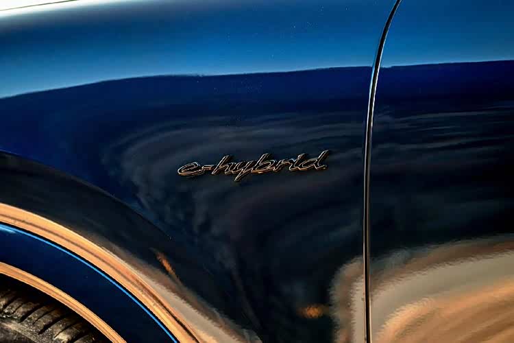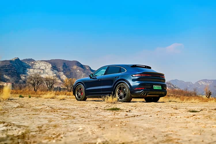 尽管手中的Cayenne Coupé Turbo E-Hybrid 4.0T名称中有Turbo,但是初见时却全无兴奋感,因为我很难轻易地找到与性能有关的元素。虽然前头部设计加大的冷却进气格栅由高光导流叶片点缀,但是与车身同色的轮眉却使其从侧面看起来更显低调和内敛,好在21英寸枪灰色轮圈配合红色卡钳能够让人感到兴奋,可是与搭载金色22英寸轮圈的TurboGT相比,整体视觉的冲击力还是弱了一点。