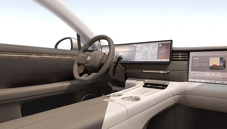 座舱内部最引人注目的是26.3英寸的超长联动屏,搭配一块10.5英寸的触控屏,信息显示极为震撼。车机系统基于高通8295芯片打造,拥有24G运行内存和256G存储空间,操作流畅度与功能扩展性位居第一梯队,完美顺应了多屏互动与沉浸式娱乐的时代潮流。