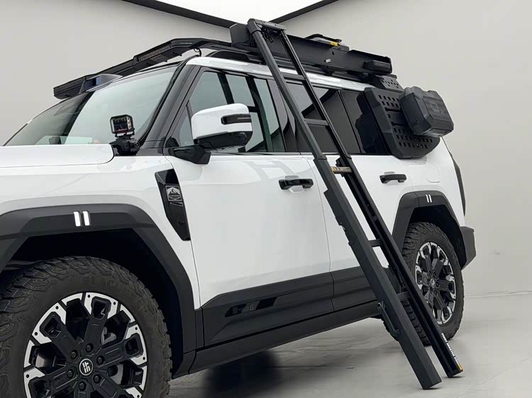 AW最新带射灯的车顶平台,满血版一共8个灯,侧面和尾部可以自定义颜色,平台上拓展备胎、防水箱子,侧面带最新的AW的爬梯,这次迭代非常成功。