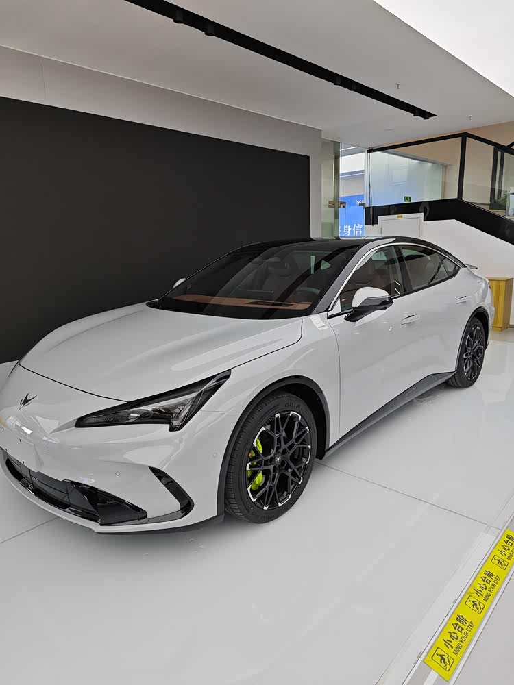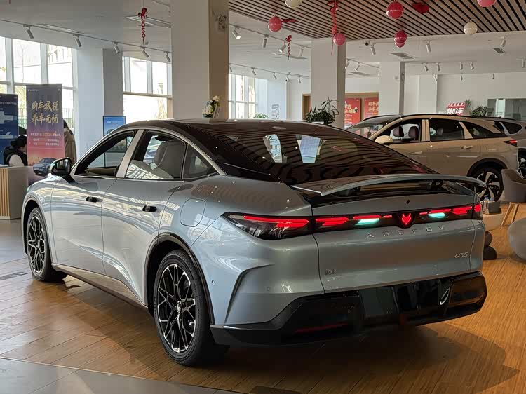 车身尺寸长宽高分别为4886/1930/1480mm,轴距2900mm,相比比亚迪秦L/海豹06DM-i、深蓝L06更大。车身侧面继续采用大溜背造型,主要新增“瓦纳蓝”、“幻影绿”车色,并换装了全新多幅式熏黑轮毂+绿色刹车卡钳,再配合悬浮式车顶、无框车门、智能电动尾翼等,战斗感呼之欲出。而重新设计的后包围加入熏黑扩散器造型,再配合两侧立体的“L”形线条勾勒,继续强调运动气息。