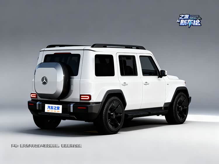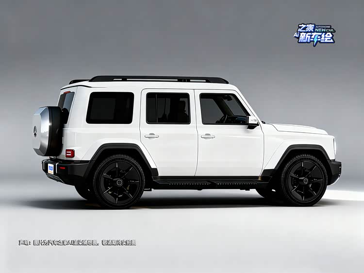 设计层面,小G保留G级标志性元素,包括直立式车头、平直车顶线条与外挂式备胎结构。方盒子轮廓延续品牌在硬派SUV领域的辨识度。前脸预计采用封闭式格栅与传统横条格栅两种版本区分电动与燃油车型。车身侧面保持直角轮眉与高位腰线设计,车尾外挂备胎强化越野属性。整体造型逻辑偏向实用结构表达,而非流线化电动车设计语言。