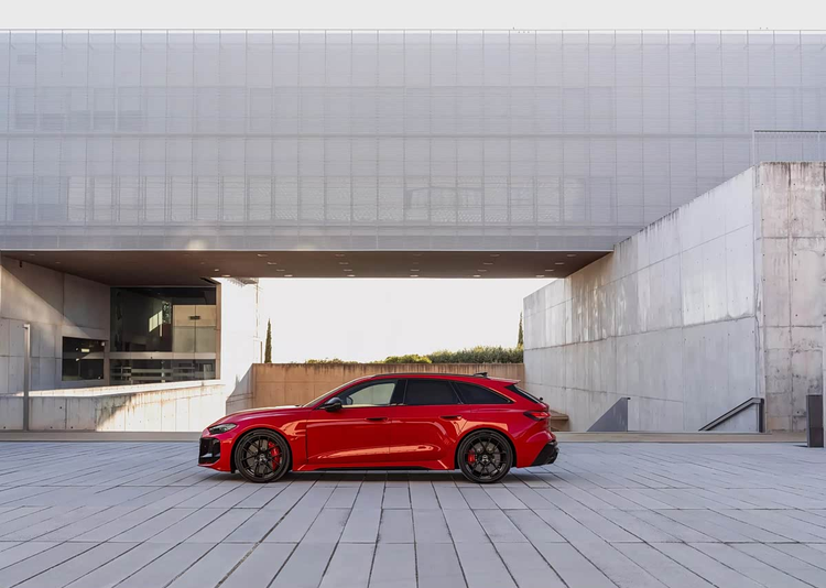 回到新车本身,从已经发布的官图来看,全新奥迪RS 5 Avant在外观设计上延续了RS系列一贯的运动化取向,并在此基础上进行了更具针对性的升级。车头部分,尺寸更大的进气格栅与两侧雾灯区域经过重新设计的进气口相互搭配,共同营造出更具冲击力的视觉效果。车身侧面,旅行车特有的优雅线条得以保留,而全新样式的轮圈设计则进一步强化了其性能属性。根据配置选择,用户还可以为它选装碳陶瓷材质的刹车盘,这对于追求极致制动性能和耐久性的驾驶者来说是一个实用的选项。