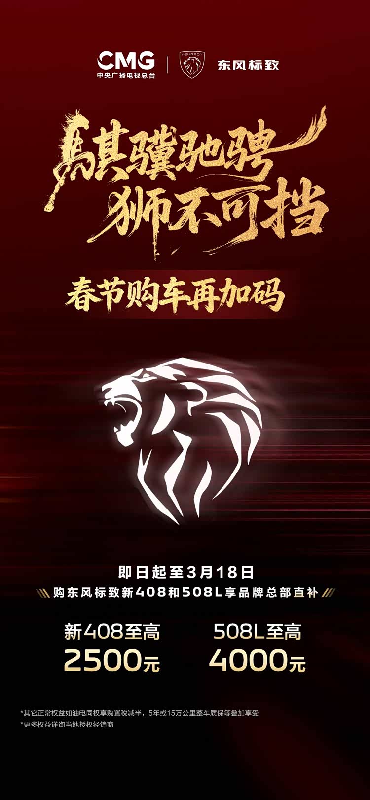 金马迎春,喜气盈门。新岁已启程,奔赴全新征程与向往。每一段前行之路,都需要可靠相伴,一辆靠谱的座驾,能以全能实力护航前路,更能为新程增添底气。为降低用户购车门槛,升级出行体验,东风标致新408推出优惠购车政策,享购置税减半,并叠加国家补贴、置换支持、金融贴息等多重福利,更有限时品牌直补,助力用户省心购车。