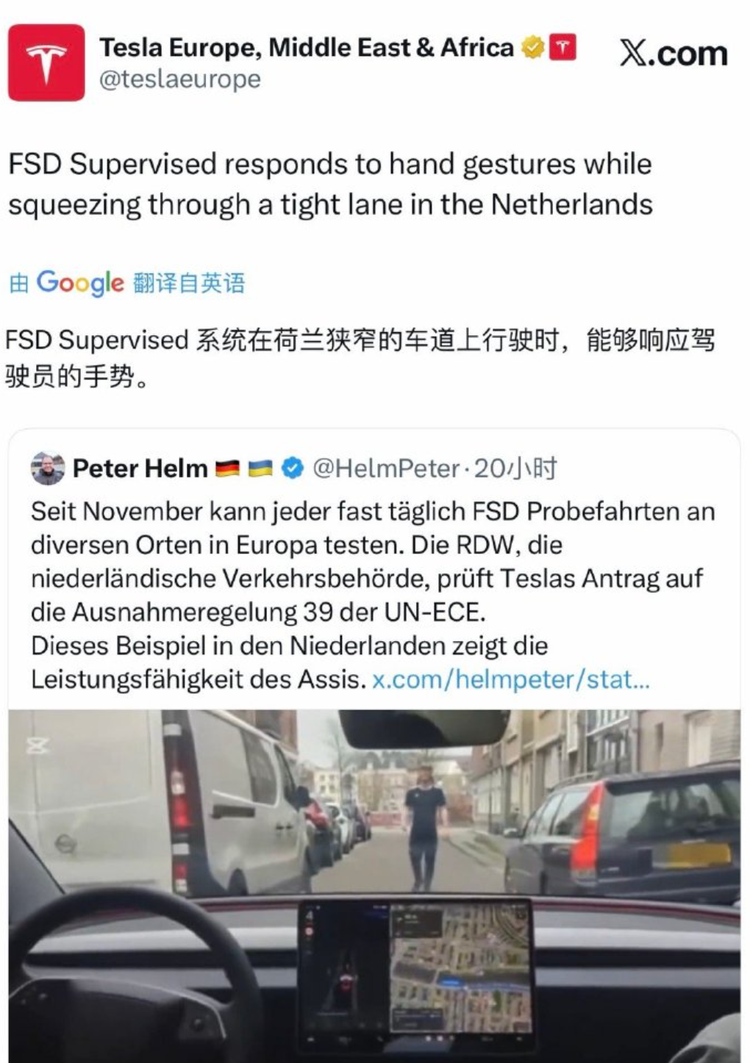 车家号·0浏览·2026-02-24 14:46 · 北京最近特斯拉又整了个大活儿,它的FSD现在居然能看懂人打的手势了!就在2月22日,特斯拉的欧洲官方号发了一段测试视频,我们先来看看。