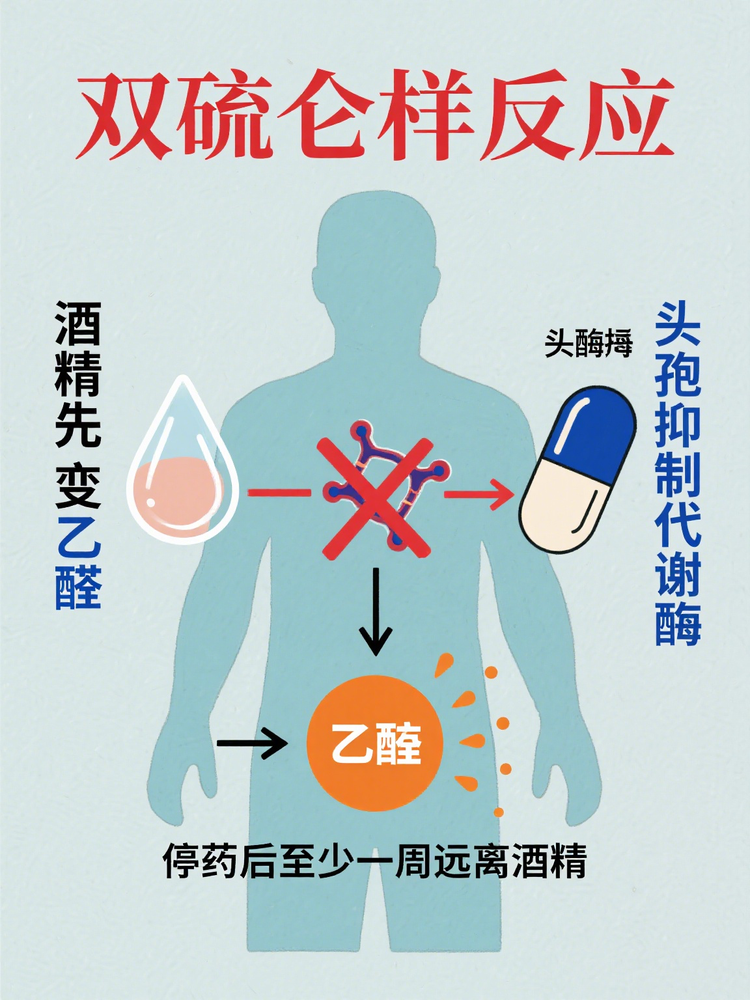 在饮酒之后用头孢类药物的话,难免会出现双硫仑样反应;或许这个医学用语有些不好记或不好理解,那就将其简单的理解为混用会出现急性中毒的反应即可。酒精和这些药物成分会分解出有毒物质,会造成的结果是胸闷、气短、口唇发绀、呼吸困难、血压下降、恶心呕吐、出现幻觉……甚至可能出现致命后果。