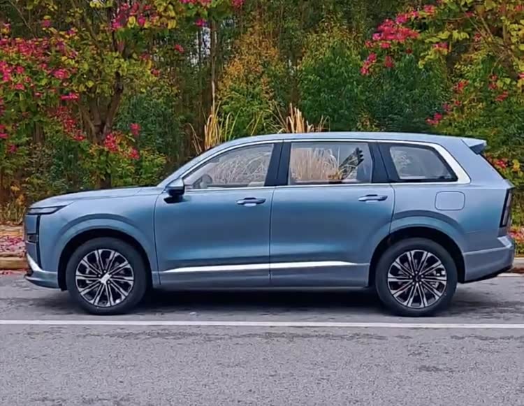 车身尺寸长宽高分别为4980/1930/1760mm,轴距2950mm,相比同级理想L6、零跑C16等更大一些。庞大饱满的身躯给人感觉很有气场,并加入大量立体的线条,来勾勒出肌肉力量感。而车窗四周、侧裙等细节处的镀铬饰条点缀,配合19/20英寸多幅式轮毂,继续强调豪华气息。