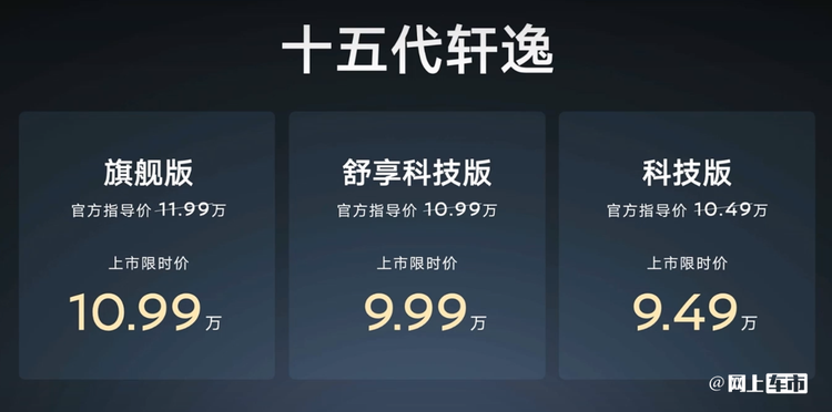 上市限时价从9.49万到10.99万,入门版相比14代车型贵2万。