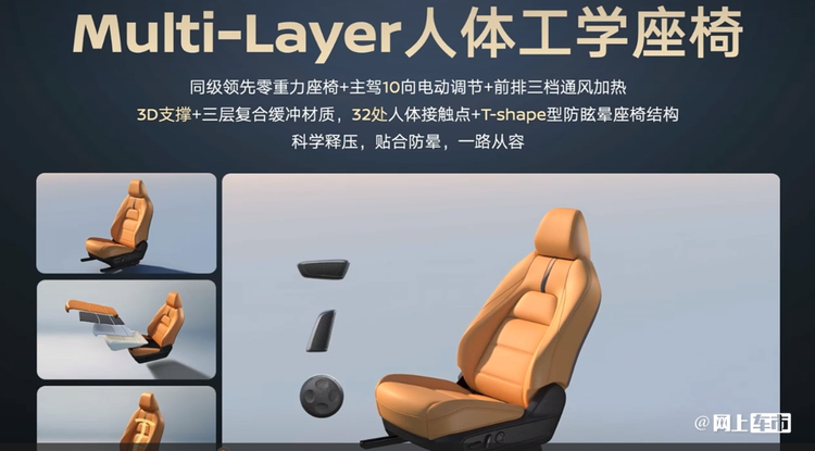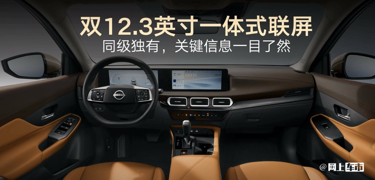 环抱式座舱设计提升档次感,首搭一体式双联屏,高配是双12.3英寸,低配是7英寸仪表+12.3英寸中控。软性包覆面积增加,细节做工也变精致了,还带无线充电面板,同时保留日产标志性的零重力座椅。