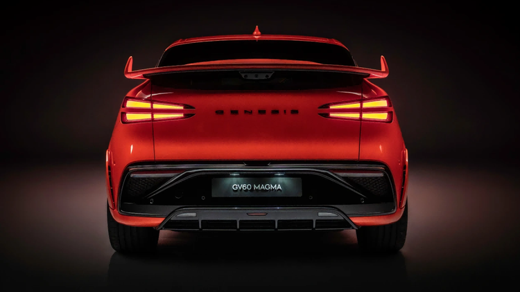 设计层面,GV60 Magma 摒弃了现代 Ioniq 5 N 的街头赛车风格,以 “低调的未释放力量” 为设计核心,在普通版 GV60 的基础上营造出更具攻击性的视觉效果,又不失捷尼赛思的优雅底蕴。新车前脸新增三个进气口,不仅优化了空气流通和散热效率,更成为 Magma 系列的专属设计标识;定制化前保险杠两侧配备更大尺寸的通风口,为刹车系统提供充足的散热;轮眉进行宽体设计,适配加宽的轮胎,视觉上更具力量感;车尾配备大尺寸尾翼,捷尼赛思强调,这款尾翼并非单纯的装饰,而是能产生实际的下压力,提升高速行驶的稳定性。