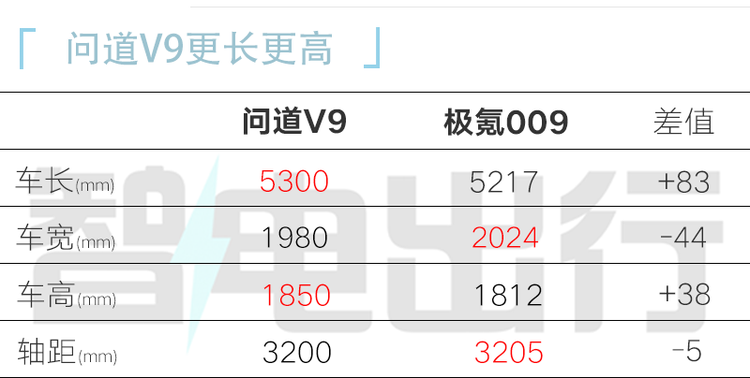 既然选择做MPV,就意味着平时还是有频繁的多人出行需求。 问道V9(参数|询价)的车身尺寸在众多MPV中算是比较大的——对比极氪009,虽然宽度和轴距略处下风,但是车长多了近9厘米。在轴距仅短5毫米的情况下,2+2+3布局的乘员纵向空间和装载空间我觉得会有比较大的惊喜。