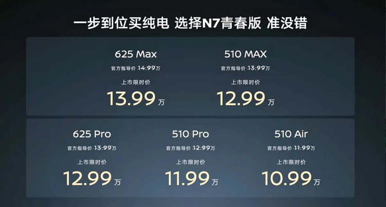 日前,我们从东风日产官方获悉,东风 日产N7(参数|询价)青春版正式上市,涵盖5款不同车型,官方指导价在11.99-14.99万元之间。当前上市阶段提供限时优惠价,起售为10.99万元,最高可至13.99万元。价格策略覆盖入门及中高配用户需求,同时为年轻群体提供选择空间。新车定位为新能源紧凑型轿车,延续现款车型整体造型设计,并在智能化和配置方面进行了针对性优化。