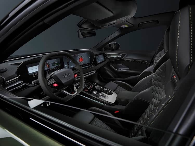 全新RS5的外观延续了RS家族的凶悍风格,专属宽体设计让车身比普通A5前后各加宽约9cm,配合蜂窝状进气格栅、大尺寸散热开口和RS专属运动前杠,战斗感十足。车尾配备居中椭圆形尾喉、大尺寸扩散器和贯穿式OLED尾灯,轿车版的小型扰流板与Avant旅行版的车顶大尺寸扰流板形成差异化设计,既保证了空气动力学性能,又强化了视觉辨识度。