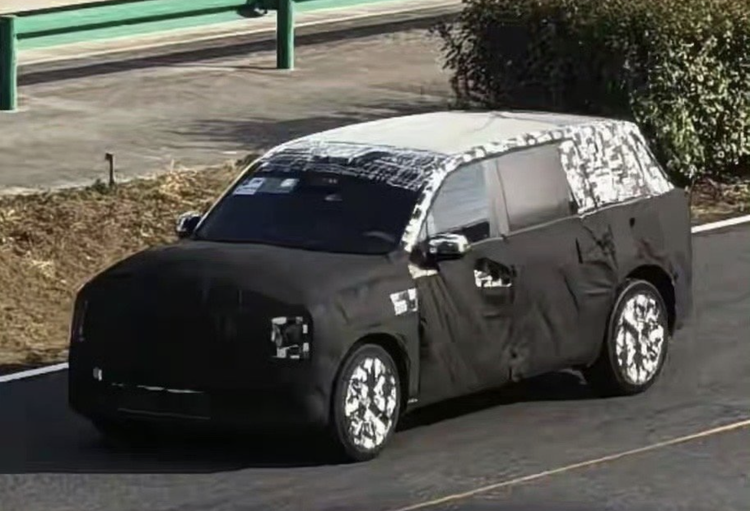 从图中可以看到,新车的整体造型采用了传统SUV的设计,而且整体尺寸非常大,看上去非常霸气。车顶还有激光雷达,毕竟这个定位下辅助驾驶不会让我们失望。另外,C柱和D柱之间还有额外的伪装,结合它的尺寸和定位,预计新车会有三排布局。