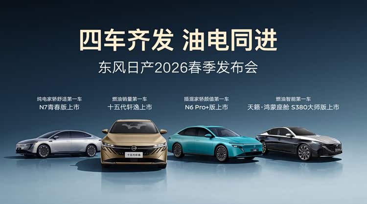 2月24日新年开工首日,东风日产以一场2026春季发布会拉开新年发展序幕,以“四车齐发,油电同进”的硬核姿态重磅推出十五代 轩逸(参数|询价)、天籁・鸿蒙座舱S380大师版、N6 180 Pro+版、N7青春版四款新车,全面覆盖燃油、插混、纯电三大核心赛道。
