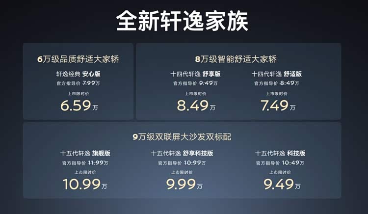 十五代轩逸的上市,也让轩逸家族形成全新的产品矩阵,与轩逸・经典、十四代轩逸联袂出击,实现6万至9万级市场的全维度覆盖,从品质安心到智能舒适,再到旗舰智慧,层层递进满足中国家庭多样化的用车需求。
