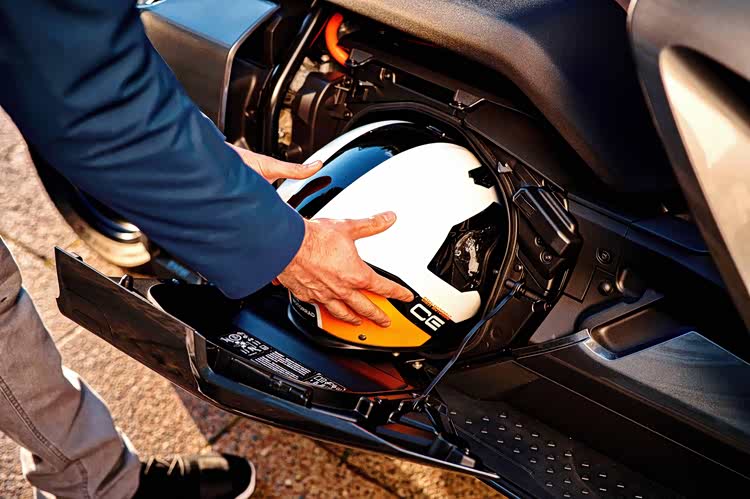 CE 04虽然设计前卫,但作为一台定位于城市通勤的踏板车,实用性依然是无法回避的考题。