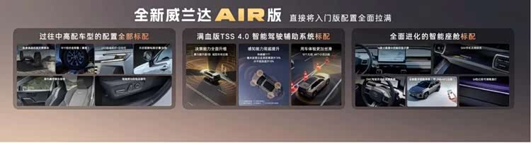相较于2025底上市的常规版车型,威兰达AIR版为价格大幅调整,在非核心配置上进行了针对性精简,取舍逻辑清晰,未影响日常用车的核心体验: