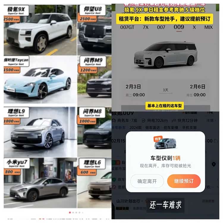 有租赁公司感慨,从来没有遇到春节返乡租赁市场一车难求的情况,极氪9系的日租金甚至已经超过许多超豪华汽车。问及抢手的原因,几家租赁公司的回复是,极氪9X的车身、空间、配置、操控、智能、动力集合到一起没有第二个可选择的替代品;而极氪009不仅有着“公路坦氪”的安全口碑,还在豪华感、性能和补能效率上全面领先,是一款没有明显短板的全能豪华MPV。一位租赁公司负责人感慨,都说中国人不懂车,其实是同质化产品太多不好选择。但凡在今天被大家抢手的,产品一定是脱颖而出的。截止到2026年年初,中国包括新一线城市在内超级都市不过30个,但中国有超过3000个县级行政区,春节返乡潮不仅让中国社会回归真实,也让中国汽车消费者对好车甚至代表汽车这个产业的产品有了最真实的选择。极氪9系的春节返乡围观,围观的是中国汽车产业的竞争力。无论租赁市场还是购车返乡,许多极氪其他产品也在9系的带动下被人关注,人们发现极氪001和007GT的流线和操控,感知到极氪009和7X在MPV和家庭SUV的空间与精致。
