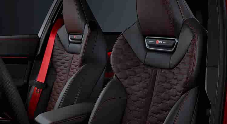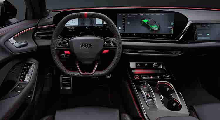 前脸为蜂窝状Singleframe格栅,与Air Curtain进气道融合。尾部扩散器内嵌双椭圆排气管,中央红色垂直反光条致敬品牌赛车传统。新车标配9种车漆,可选Audi Exclusive定制。而运动套件(约1万欧元)包含:Bedfordgreen专属涂装、古铜色刹车卡钳、21英寸双色轮圈、最高车速提升至285公里/小时、黑色排气尾管以及碳纤维空气动力组件。