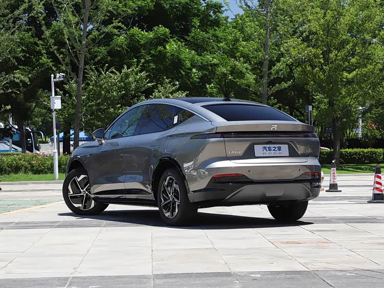 再来看车尾部分,车尾设计延续整车极简豪华的格调,同时与车头造型形成完美呼应,兼顾辨识度与实用性。车尾线条饱满圆润,溜背式车顶与车尾自然衔接,搭配小巧的鸭尾扰流板,既提升了运动感,也进一步优化了空气动力学性能,降低高速行驶风阻,车尾核心是贯穿式LED尾灯,灯组造型修长精致,内部采用流水点亮效果,点亮后视觉效果醒目,夜间行驶辨识度极高,同时加入熏黑处理,增添运动气息。