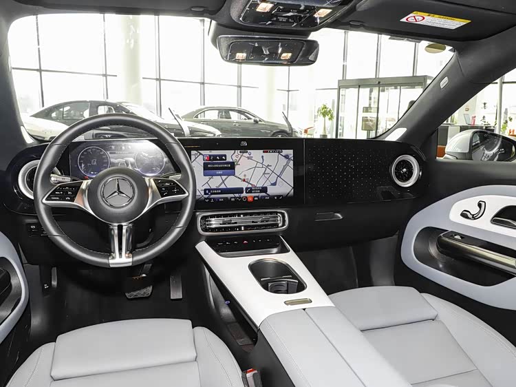 进入车内,奔驰CLA新能源主打未来感智能座舱,采用大面积软质材料包裹,配备10.25英寸仪表屏+14英寸中控屏+14英寸副驾娱乐屏的三联屏组合,覆盖整个中控台,其中副驾屏支持隐私模式,基于眼球追踪技术保障行车安全。车机系统融合字节跳动豆包AI大模型,空间方面,新车采用4门5座布局,2830mm长轴距带来充裕的乘坐空间。