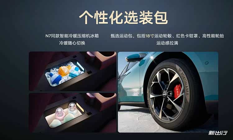 选装方面,新版本车型搭载 N7 同款车载冰箱,并且支持选装运动包,包括 18 寸轮毂、卡钳罩、性能轮胎。
