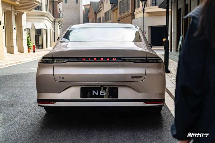 车尾方面,N6 采用了贯穿式尾灯的设计,NISSAN 的发光字标置于中间,与车头的发光 LOGO 形成呼应。从尾部的视觉来看,N6 在家用和动感之间寻求平衡的那种设计感还是很明显的。