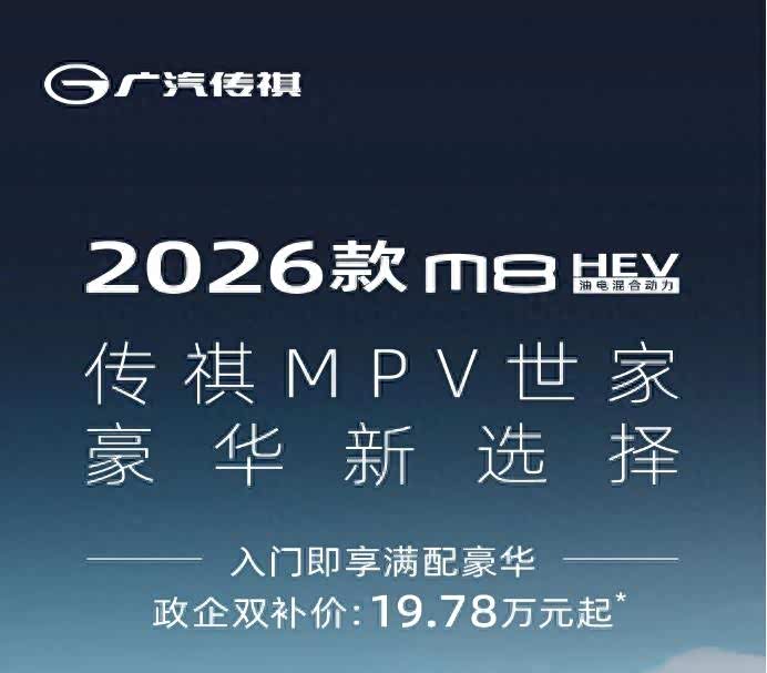 所以在2026年开年,传祺只能够进一步消耗“传祺M8”这个IP,推出一款价格足够吸引的传祺M8 HEV。要知道插混的传祺向往M8,卖26.99万起,而传祺M8 HEV,只是比它少了一块25.5kWh的电池,价格便直接减掉了7万元。