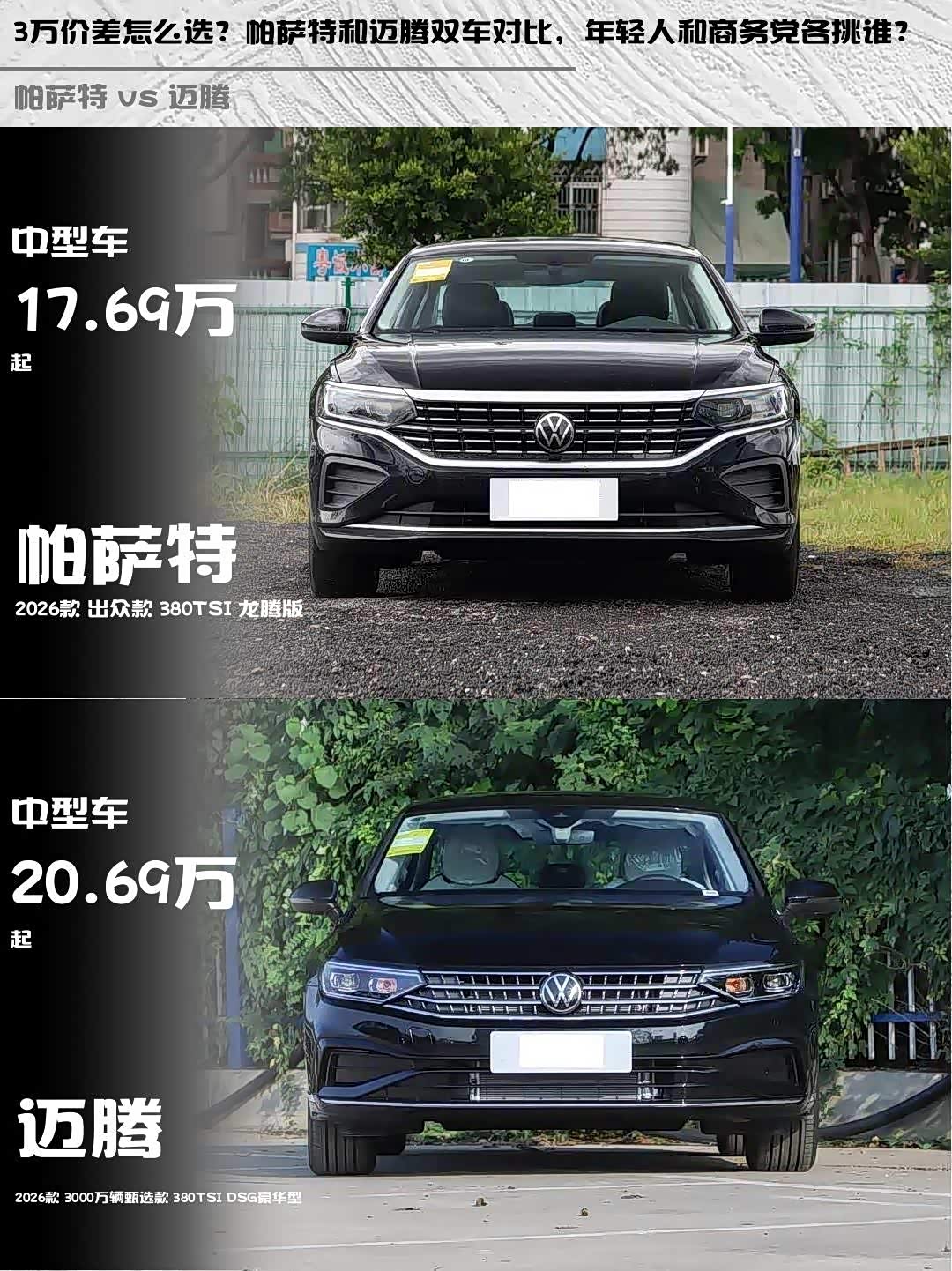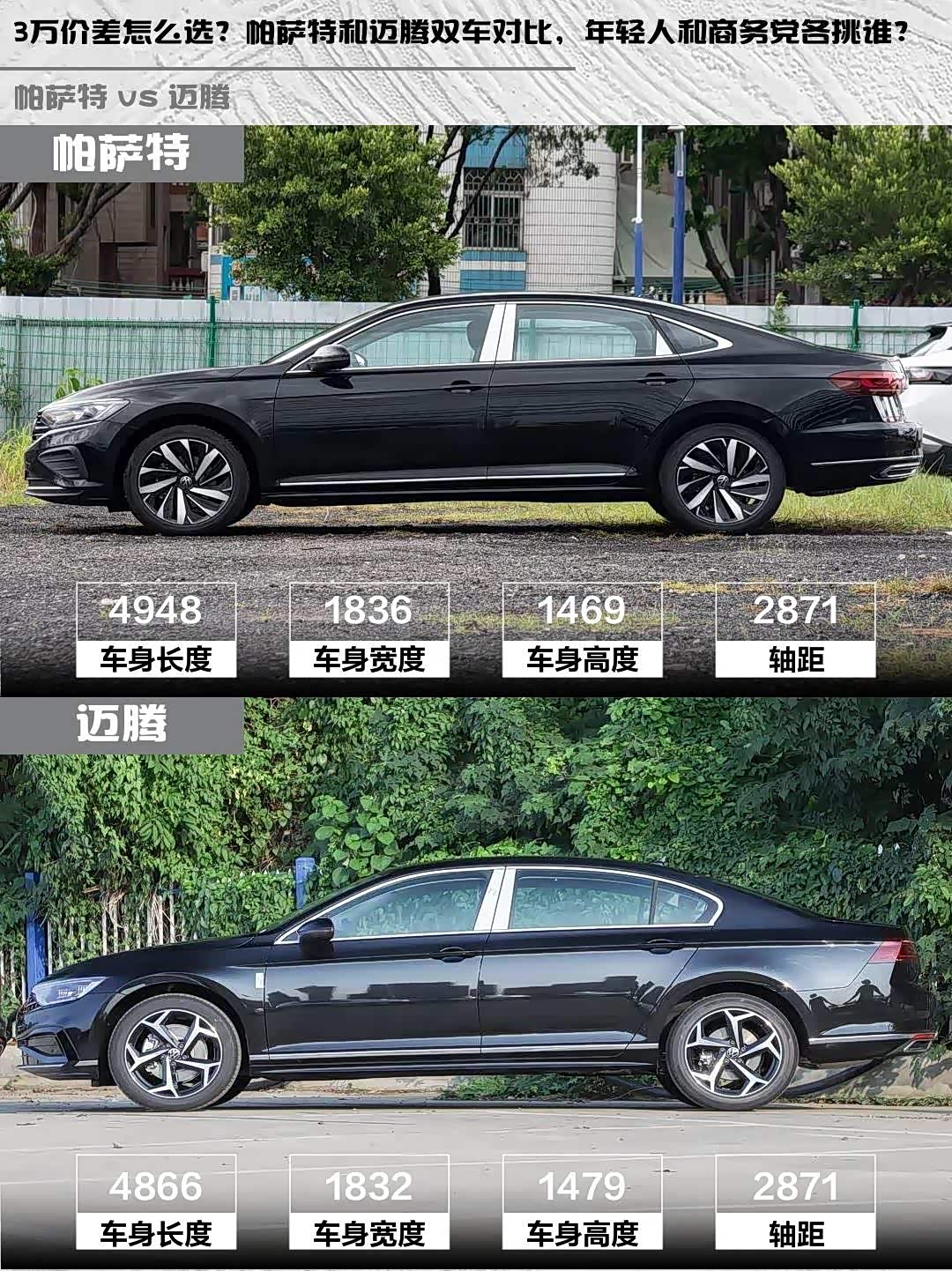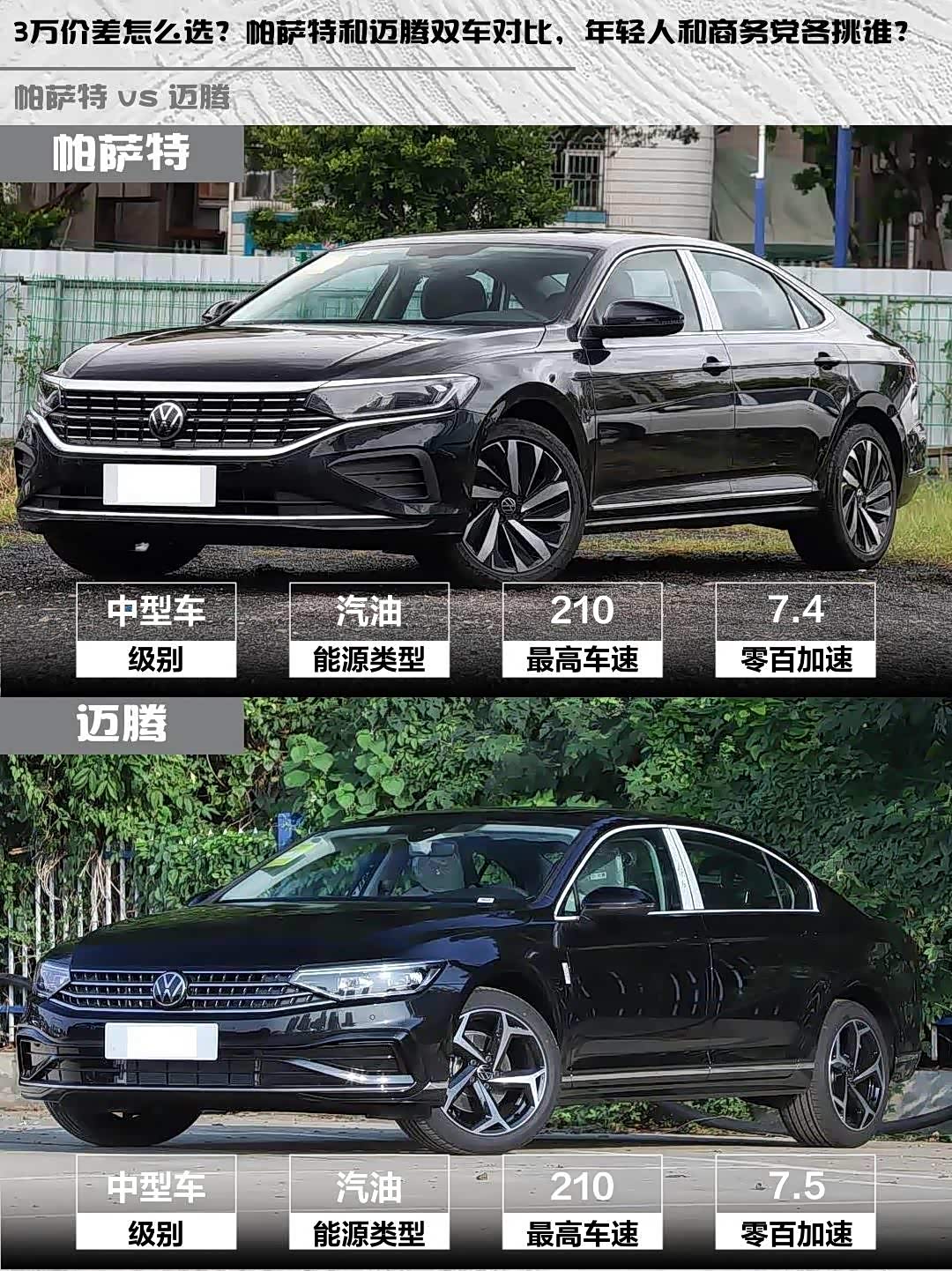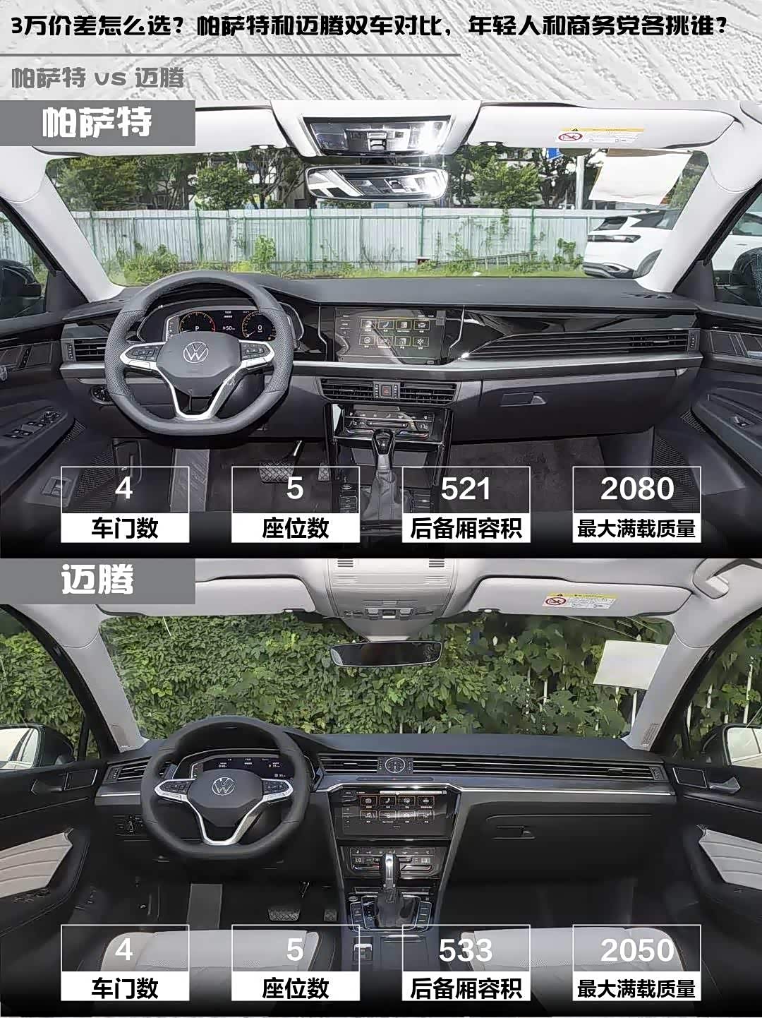 3万价差怎么选?帕萨特和迈腾双车对比,年轻人和商务党各挑谁?