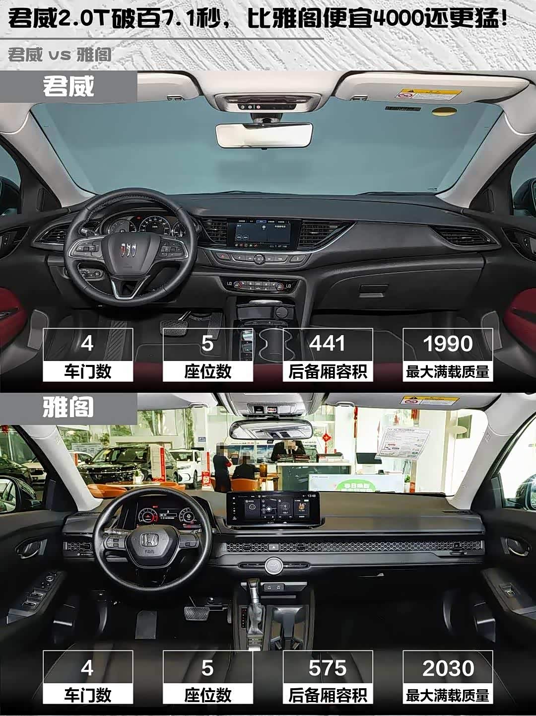 最后说个冷知识:君威的ANC主动降噪技术,高速隔音效果比雅阁强不少!不过雅阁的Honda Sensing确实香,经常跑长途的可以考虑。你们会更倾向哪款呢?