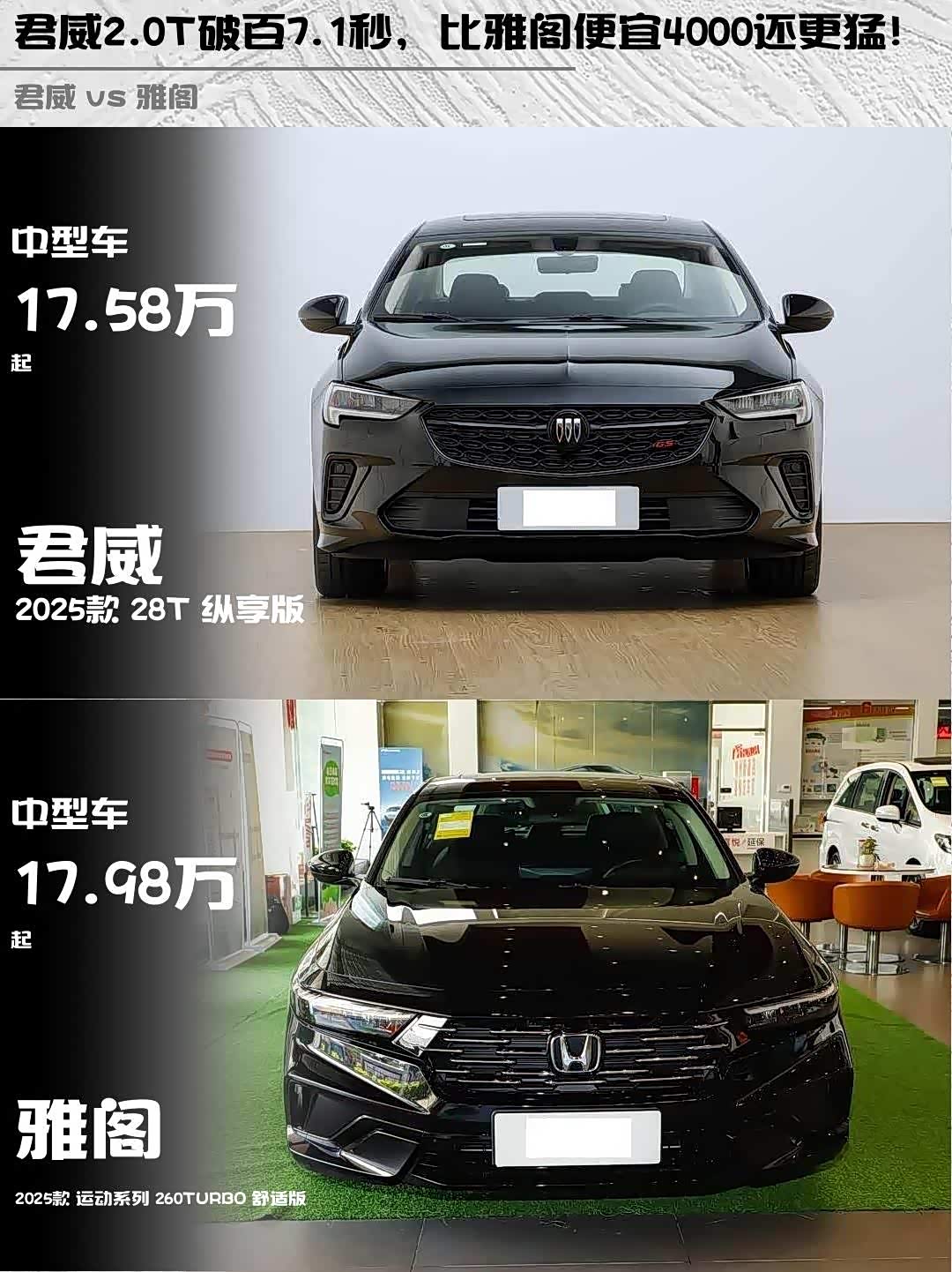 最近在选B级车的小伙伴看过来! 君威(参数|询价)2025款28T纵享版和雅阁2025款运动系列260TURBO舒适版这两款热门车型,我深度对比后发现了不少有意思的点🔥