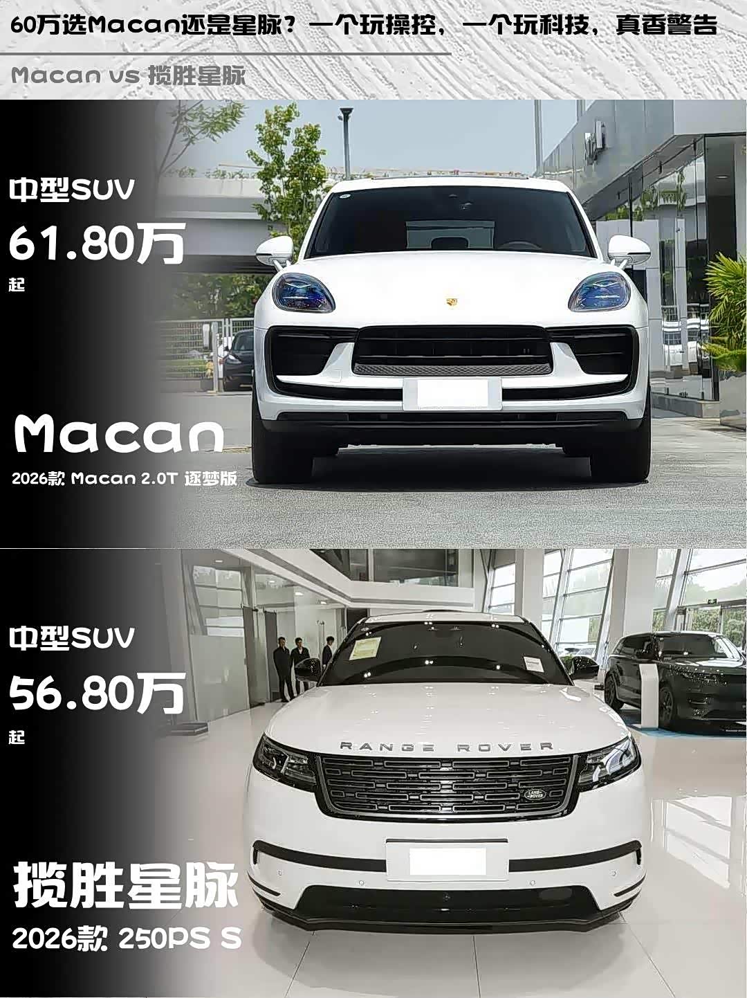 最近后台好多兄弟在问60万预算选豪华SUV,2026款 Macan 2.0T 逐梦版和2026款 揽胜星脉(参数|询价) 250PS S到底怎么选?今天直接上干货对比!🔥