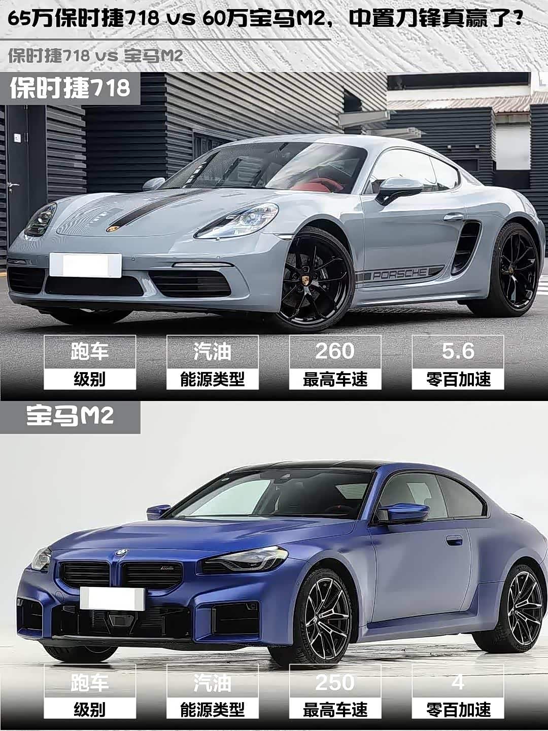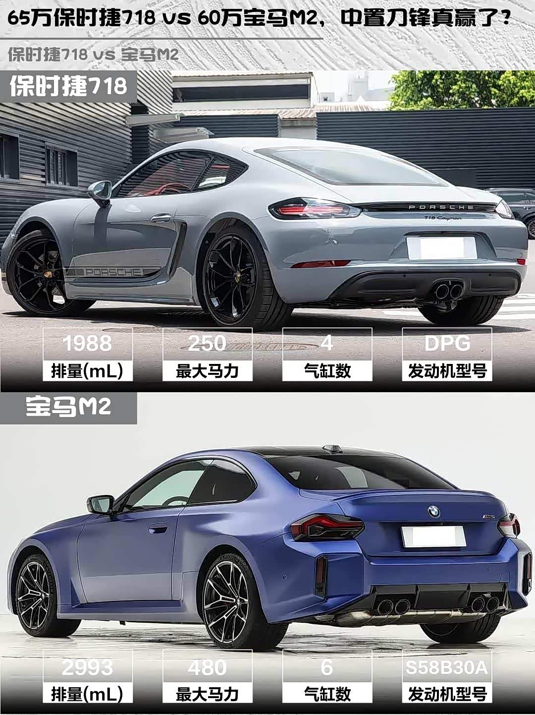 65万保时捷718 vs 60万宝马M2,中置刀锋真赢了?