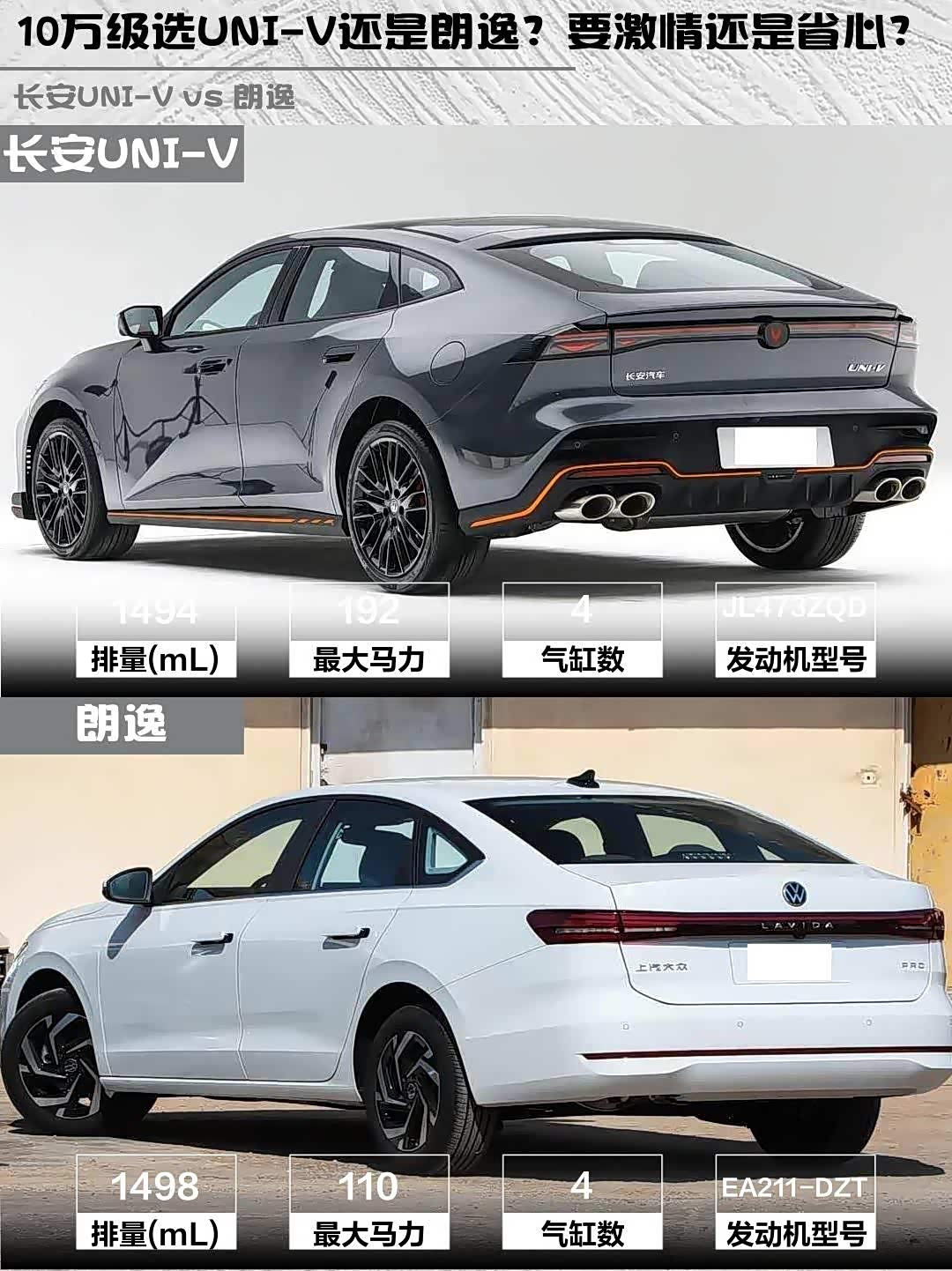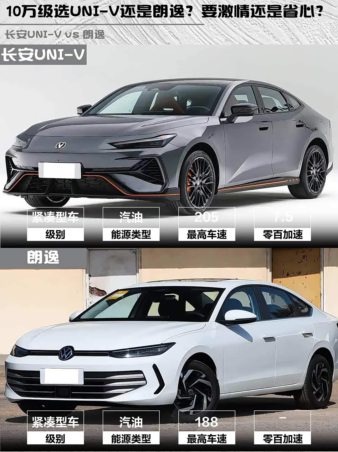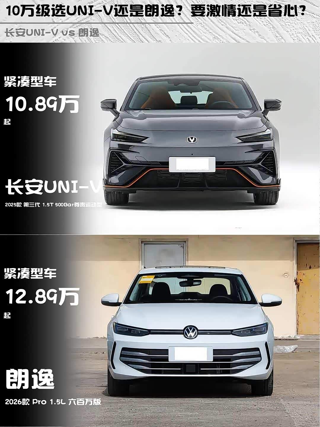 最近在10万级家轿市场纠结到裂开😫! 长安UNI-V(参数|询价) 2025款 第三代 1.5T 500Bar尊贵运动型和朗逸2026款 Pro 1.5L六百万版简直两个极端,实测对比后我悟了——