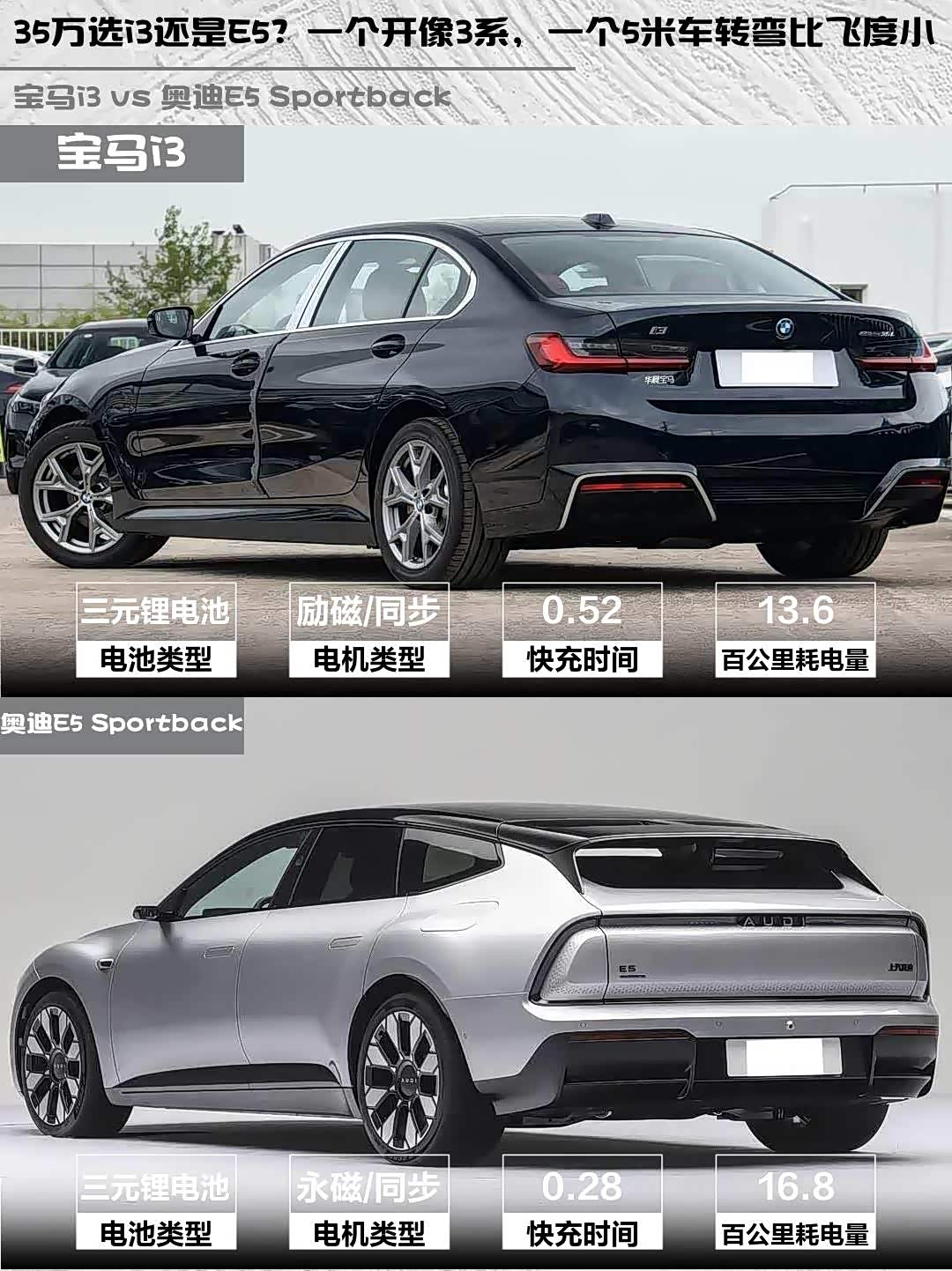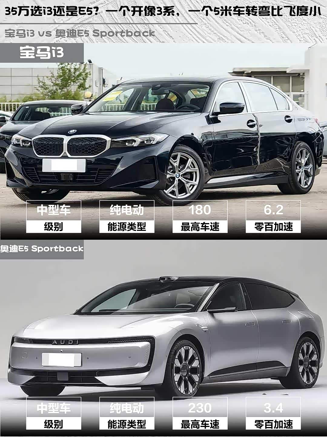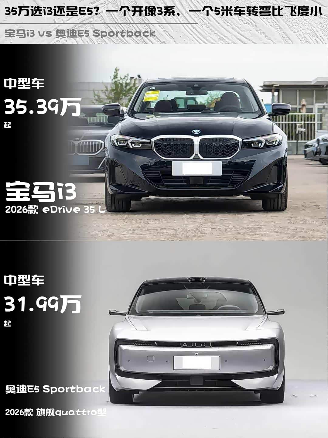 最近深度试驾了宝马i3 2026款 eDrive 35 L和 奥迪E5 Sportback(参数|询价) 2026款 旗舰quattro型,两款都是35万级豪华纯电的热门选手,但性格差异超大!分享一下真实感受👇