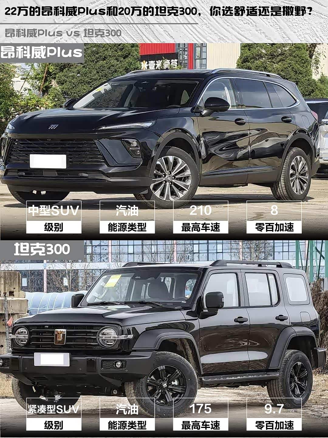 最近后台好多人在问 昂科威Plus(参数|询价)和坦克300怎么选?这两台车定位完全不同,但价格区间确实有重叠,今天就用2026款昂科威Plus 28T两驱白金版(22.99万)和2025款坦克300 2.0T汽油挑战者(19.98万)做个深度对比,看完你就知道该冲哪台了!🚗💨