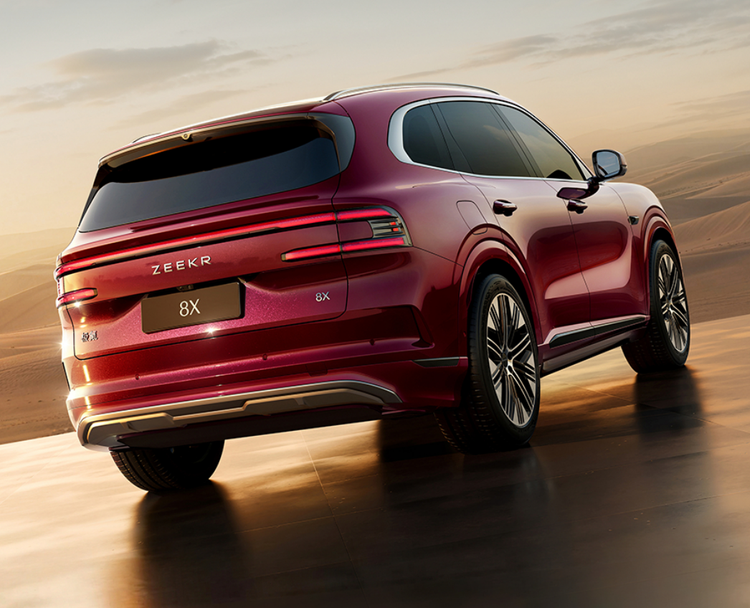 极氪8X定位中大型六座SUV,相较于极氪9X的张扬,设计更内敛柔和,侧面与尾部线条圆润流畅,5100mm车长搭配3069mm轴距,兼顾空间与操控灵活性。该车最大亮点在于狂暴的动力性能,搭载2.0T发动机+三电机插混系统,电机总功率高达1030kW,零百加速有望进入3秒级,刷新家用SUV性能上限。