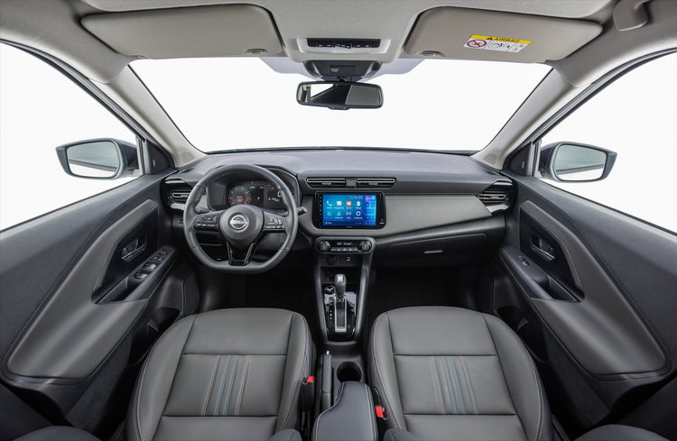 来到车侧,新车标配17寸轮毂;车尾部分一样与Kait的造型同步,线条更加简化,尾灯改为横向布局设计,提升横向视觉宽度。此外,后牌照位置也从尾门下移至后保险杠,与巴西版本设定一致,使尾门造型更干净利落。从公布的照片来看,内饰预计也将直接沿用Kait的设计风格,基本可视为Kait的右驾版本。中控台处取消旧款顶部略微隆起的冷气出风口设计,新款改为更贴合仪表台的角度式出风口布局,取代过去的圆形样式。安全与驾驶辅助系统预计维持现有高规格配置,包括具备Stop & Go功能的智慧型定速巡航控制、盲点侦测、后方横向来车警示、车道偏离警示、前方碰撞预警、自动紧急刹车系统、驾驶疲劳警示、驾驶注意力监测、自动远光灯辅助、360度环景影像以及移动物体侦测功能等。巴西市场的日产Kait