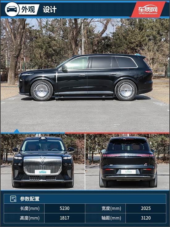 值得一提的是,评测车还配备了华为智慧投影大灯,支持定制迎宾灯效和导航光毯功能,再加上电动车侧脚踏板,仪式感拉满。车尾造型简洁饱满,超长贯穿式“山海相映”后尾灯采用规整排布的菱形LED灯珠组成,点亮效果十分精致。此外,评测车选装了22英寸“天地之镜”轮毂,进一步强化豪华质感。轮胎为倍耐力P ZERO系列,提供出色的抓地力,确保操控稳定性。