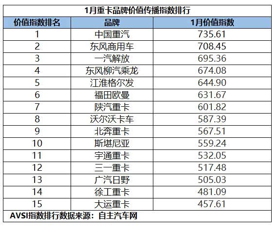 2月25日,1月重卡品牌价值传播指数(AVSI)正式发布。这份开年榜单不仅为全年行业传播定下基调,更在新能源渗透率持续攀升、出口市场高歌猛进的背景下,揭示出品牌竞争的新维度:当政策红利逐步退潮,真正决定市场话语权的,不再是单纯的销量数字,而是品牌在用户心智中占据的位置。从1月的指数排位来看,重卡行业的传播格局正在发生微妙而深刻的变化,一场关于价值认同与情感连接的持久战已然打响。