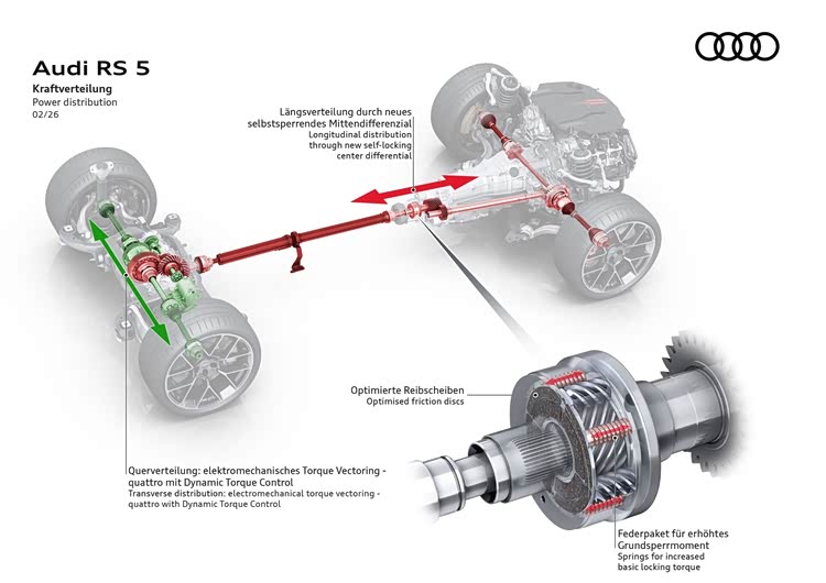 全新RS5的策略非常清晰:它不像C63那样激进地追求极致马力,也不像M3那样执着于纯粹的机械沟通。它通过混动系统弥补了V6发动机在低扭上的不足,利用quattro四驱系统和全新的eTV电子扭矩矢量分配系统,将动力毫无保留地转化为抓地力。