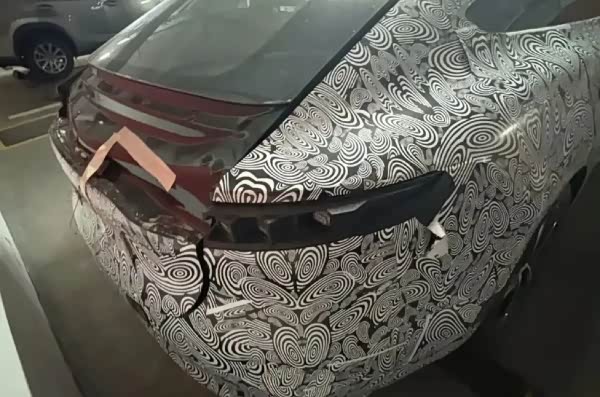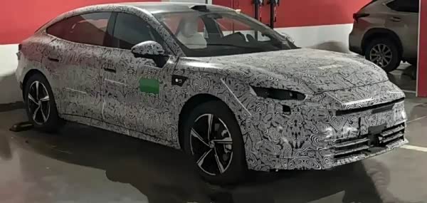 车身侧面是这台车的精髓。溜背造型从B柱后方一直延伸到车尾,线条非常流畅。门把手用的是半隐藏式设计,不是全隐藏弹出式——好处是低温环境下不容易被冻住,故障率更低,日常使用也更顺手。整体车身比例修长,轴距预计达到中型轿车水准,后排腿部空间值得期待。车尾方面,虽然量产灯具还没装上,但从预留的轮廓能判断是贯穿式尾灯设计。后备厢预计为一体式掀背开启,开口角度大,装载大件物品比普通三厢轿车方便不少。