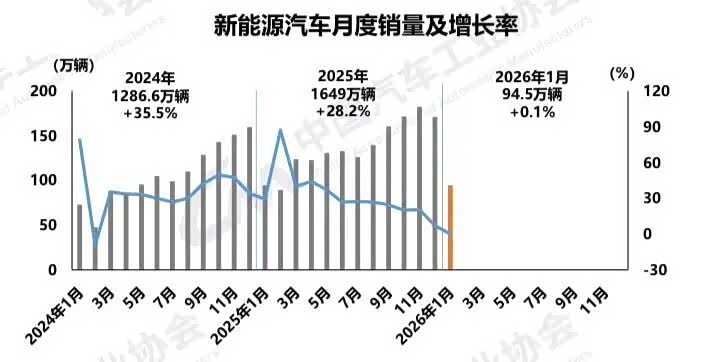 不过,细看2025年底的市场动态,就能感受到一股明显的“抢搭末班车”氛围。新能源购置税全额免征政策在2025年12月31日到期,大量消费者选择在年底前下单,这直接透支了2026年初的市场需求。中汽协数据显示,2026年1月汽车销量234.6万辆,同比下降3.2%,其中新能源车仅增长0.1%,环比更是大幅下滑近40%。