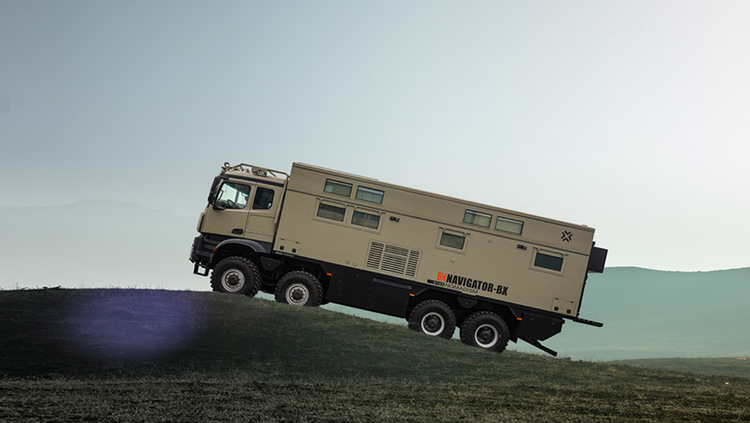 当一辆车的尺寸突破11米,重量超过20吨,搭载8个驱动轮和7把差速锁时,它已经超越了传统意义上的交通工具,成为一座移动的城堡、一个可以探索世界的移动之家。这就是“领航者BX”—— 一款以重卡底盘打造的实力派多地形越野房车。许多人对房车的印象或许还停留在温馨舒适的内部空间,但其真正的核心与灵魂,往往隐藏在那些鲜为人知的“硬核”机械部分。它们决定了这栋“移动城堡”能走多远、能去多险、能在多么严苛的环境中为您提供安稳的庇护。