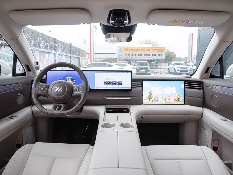 座舱层面,智己LS6采用27.1英寸5K MiniLED双联屏结构,与15.6英寸3K MiniLED副驾娱乐屏形成三屏组合。分辨率与亮度表现基于MiniLED背光技术,画面细腻度与对比度在日间光照环境下仍具可读性。系统搭载AIOS 1.0交互平台,支持多任务分屏、语音连续指令与场景模式切换。实际操作逻辑以滑动与卡片式界面为主,减少层级跳转。副驾区域加入独立娱乐屏,在长途场景中可实现影音播放与导航分离显示,降低对主驾的干扰。