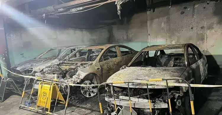 图/某地下车库车辆起火牵连周围多辆汽车