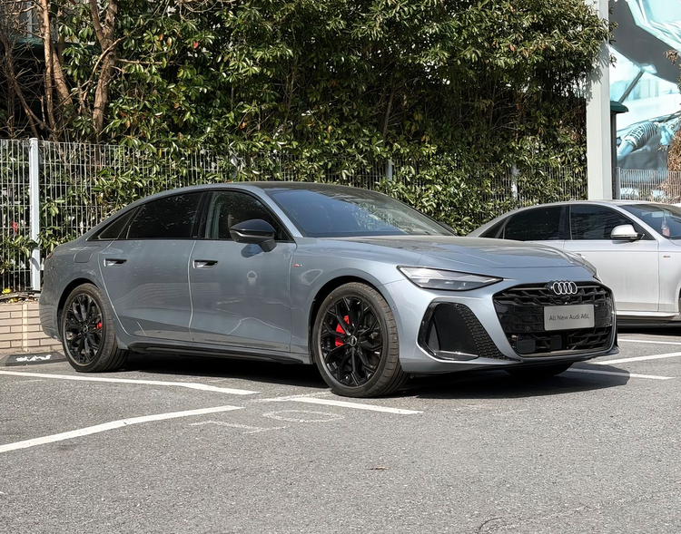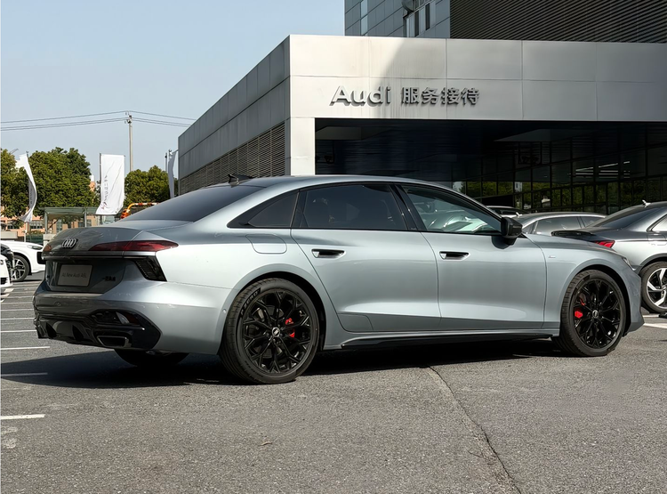 车身尺寸方面,新车长宽高分别为5142/1887/1464mm,轴距3066mm,相比现款奥迪A6L(长宽高5050/1886/1475mm,轴距3024mm)全面升级,也要大过奔驰E级。车身侧面采用较为饱满的溜背式造型,而大量凌厉的线条又勾勒出肌肉力量感。另外还换装了半隐藏式门把手、多种全新造型轮毂+红色卡钳,并提供曼达洛银、香槟黑、传奇黑、茉莉白、海洋蓝,共五款配色可选。