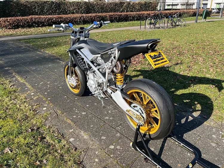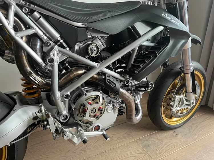 动力核心植入 Multistrada 1100 的 V 缸引擎,换上轻量化曲轴、赛车凸轮轴并流用 1098 仿赛变速箱。 底盘采用全新铝合金车架搭配初代999双摇臂、Hypermotard 1100前叉,后方更搭载具备自制电子阻尼调整的Öhlins避震,并配备17寸Marchesini锻造镁合金轮框。